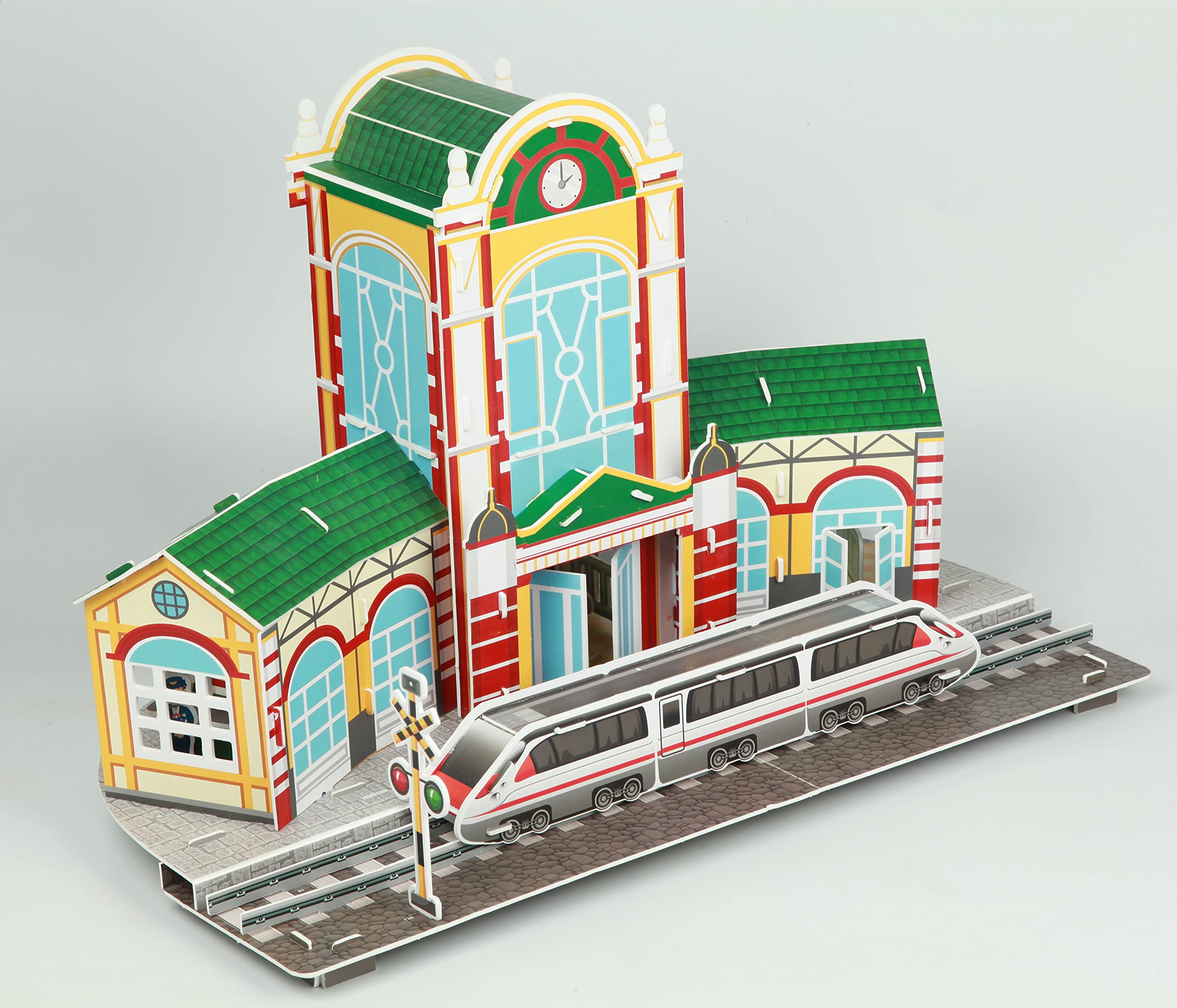 Fiesta Crafts Build A Train Station 3d Construction Puzzle Model Craft Kits For Kids Educational Diy Craft Toy With Suitable Staff And Train For Ages 6 Year Amazon Co Uk Toys Games